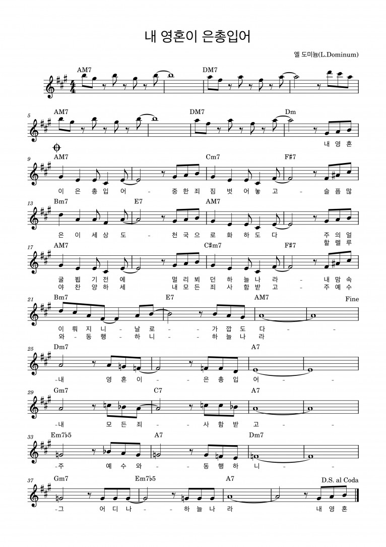 뮤직타임 [악보] 내 영혼이 은총입어 - L. Dominum (LoudateDominum 라우데테 도미늄: 하나님을 찬양하라)